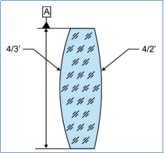 在上面的图中,是一个球面透镜元件,元件的基准轴是透镜边缘的外圆柱,左侧表面允许的最大倾角为3‘,右侧表面允许的最大倾角为2’。有的时候,在简化图纸中,会省去A基准的标注,这种情况下也是默认以透镜外圆柱做为基准。