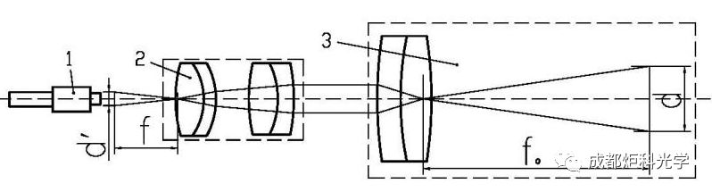 1:测量显微镜; 2:被测光学系统;3:平行光管;